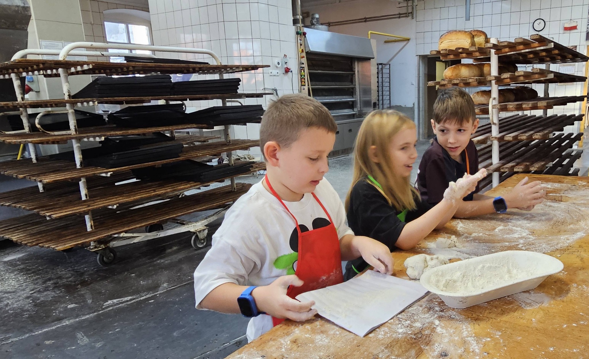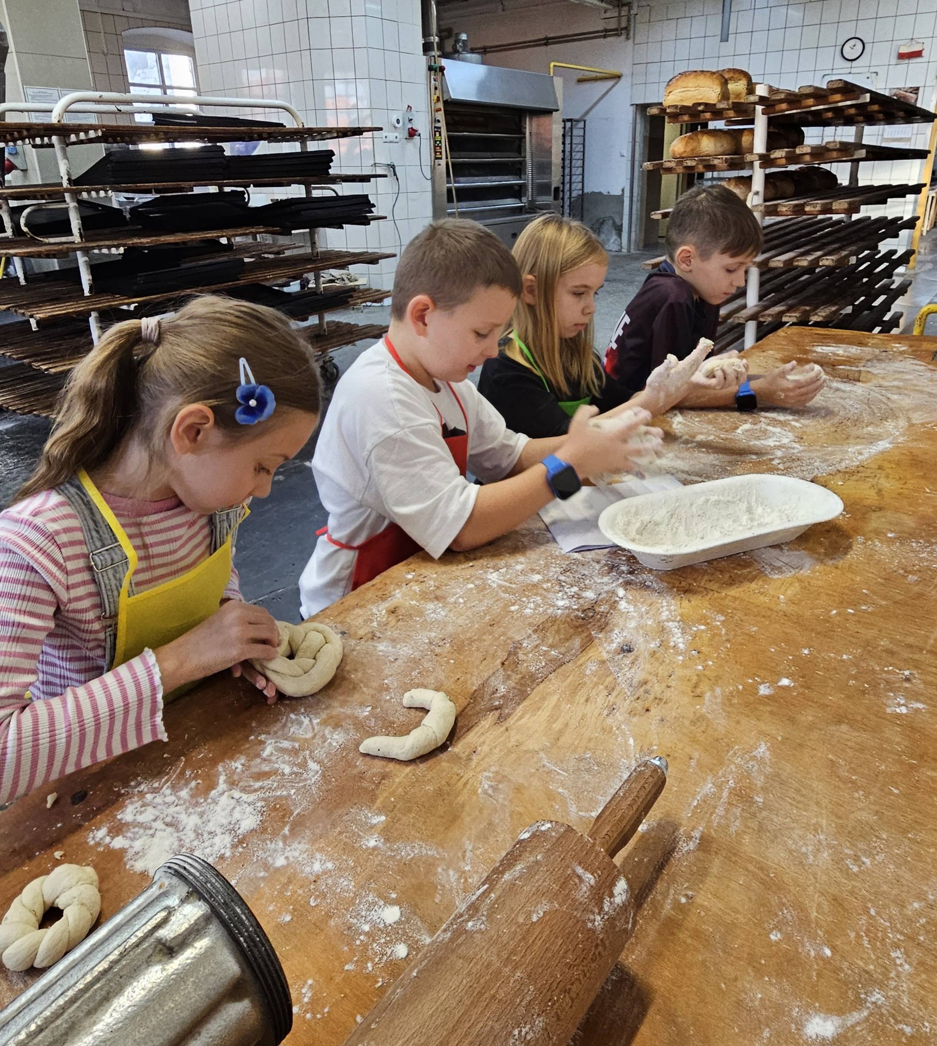 próbowali formowania bułek, rogali i innych wypieków, obserwowali proces wypieku w piecu.